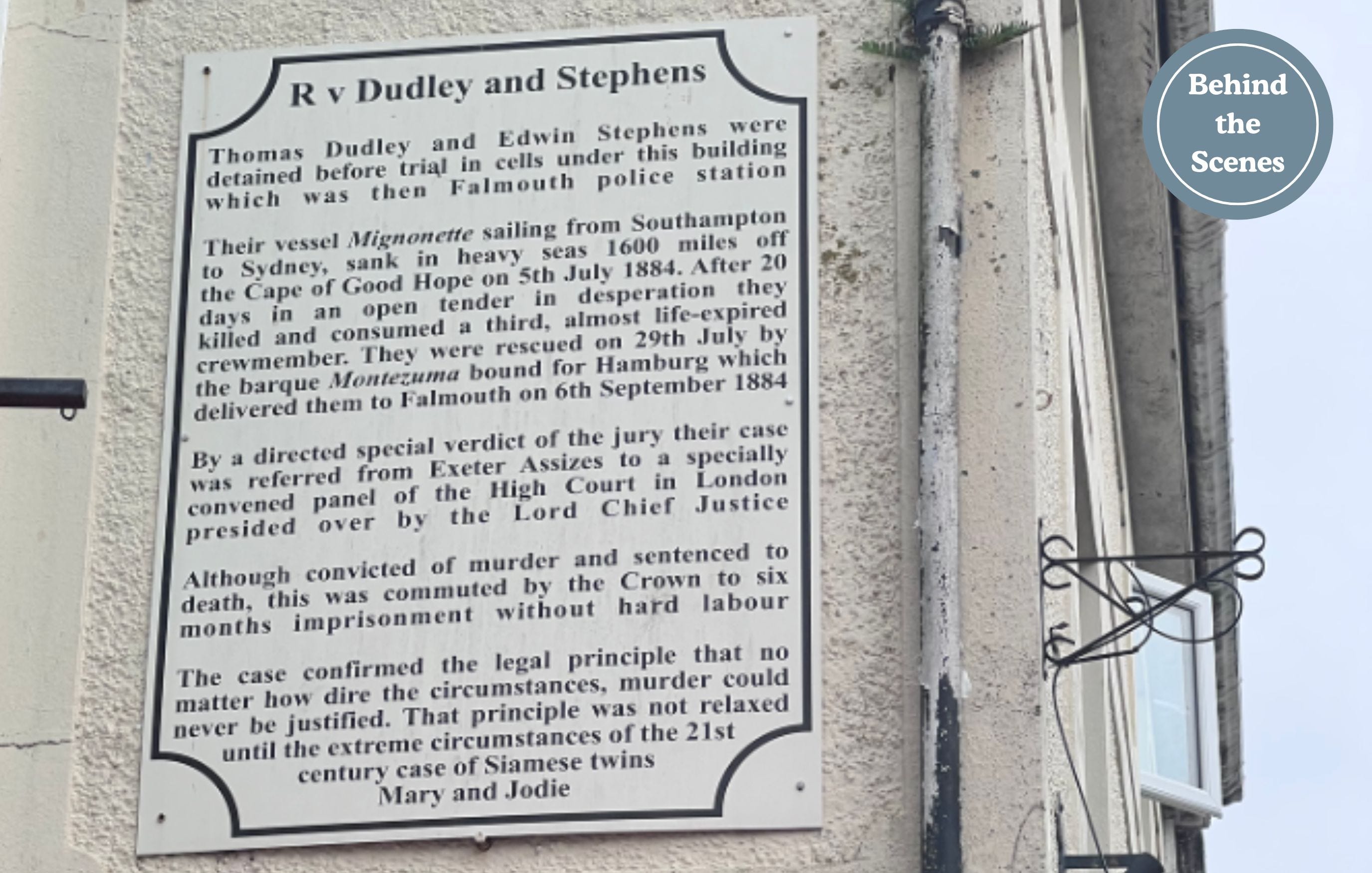 While poring over documents in libraries, I also made a trip to Falmouth, the town on the southern coast of Cornwall, England, where Dudley and Stephens were brought when they were rescued—and where they were arrested and charged with murder.